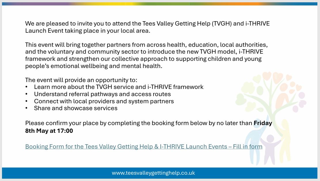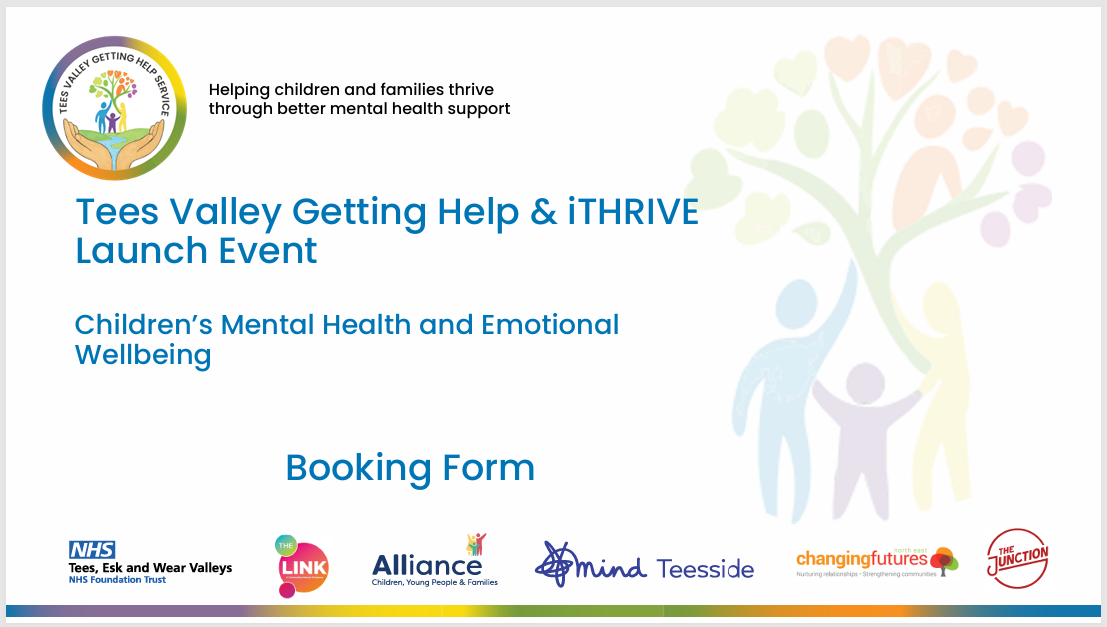 Booking Form for the Children’s Tees Valley Getting Help & I-THRIVE Launch Events Published: April 14